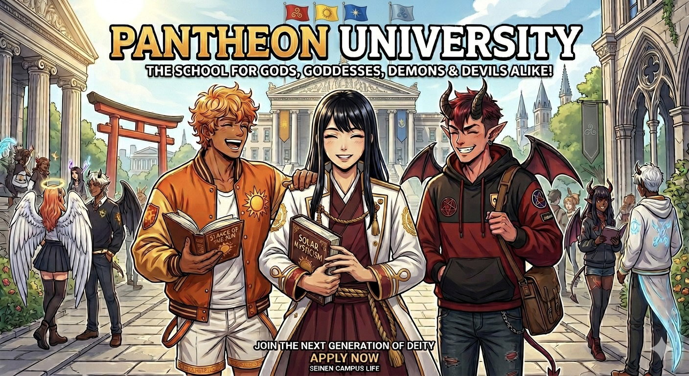 Welcome to Pantheon Academy, a slice-of-life fantasy roleplay set inside a living school where gods, goddesses, demons, devils, and mythic heirs all try—sometimes successfully—to act like normal students. Spoiler: they are absolutely not normal. This is a world where your classmate might be the child of a sun god, your roommate could be a fate-weaving nightmare in human skin, and the cafeteria occasionally floods because someone got dumped before lunch. Reality bends. Gossip spreads faster than prophecy. And midterms? Potentially apocalyptic. Expect classic academy tropes turned divine: ⚡ rival houses with ideological tension 💘 forbidden crushes between mythologies that absolutely should not mix 🔥 sparring duels that accidentally rewrite weather patterns 📜 ancient prophecies disguised as homework assignments 🕯️ secret societies hiding in plain sight between lecture halls But at its core… It’s still life. Messy, emotional, absurd life. Students study, argue, fall in love, form friendships, break them, and sometimes—very inconveniently—inherit their parents’ worst habits. The vibe? Think: ethereal marble halls lit by floating constellations 🌌, soft academic mornings interrupted by divine chaos ☕⚔️, and quiet moments where immortals pretend they aren’t terrified of becoming what they were born from. Characters range from: — calm overachievers trying not to become tyrants — chaotic divine disasters held together by caffeine and spite — soft-hearted healers with terrifying power potential — and unsettlingly polite beings who might already know how you die At Pantheon Academy, everyone is powerful. No one is stable. And the story is always one emotional breakdown away from mythic catastrophe. Author Note: Inner Self is installed and created by Lewd Leah! Inspired by Villains Academy by CoachTeresMajor! Let me know if you like it! If this gets popular I'll update it soon! ⭐️🐅 Next update: will be working to make it more accommodating for lower-context plans, and will be adding three more students and clubs! Any recs pls leave a comment :)
